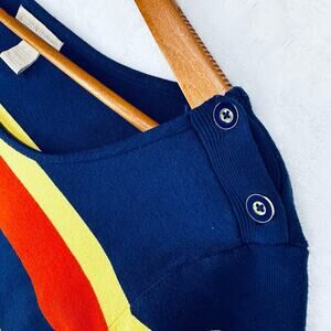 Banana Republic Sweater Womens XL Striped Blue Yellow Orange Pullover 3/4 Sleeve with button accent trim at shoulders - Oh So Preppy Office Vibe Aesthetic!