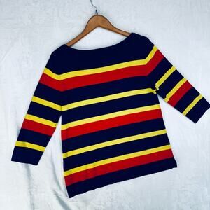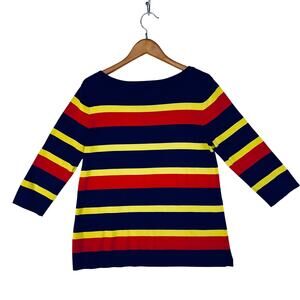 Banana Republic Sweater Womens XL Striped Blue Yellow Orange Pullover 3/4 Sleeve