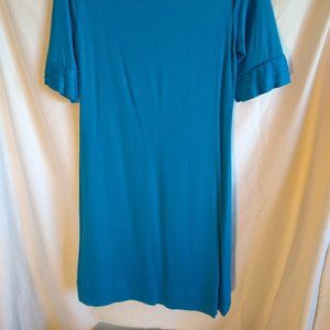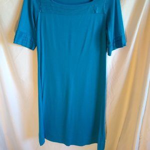 This gorgeous turquoise color Banana Republic Swing Dress Size Medium, is perfect for summer. Square neck color with band detailing at collar and sleeves. Has half sleeves, perfect to show off that summer jewelry. Pairs nicely with leopard print pumps. Shoes are also available.