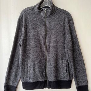 Banana Republic Sz L Knit Full Zip Jacket Sweater Gray Mock Neck Pockets