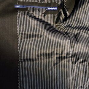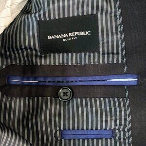For sale is a like-new Banana Republic Tailored Slim Charcoal Italian Wool Suit from 2020. I bought it, wore it once to a funeral, and then sized out of it, so it's in good shape with very little wear.