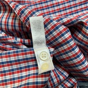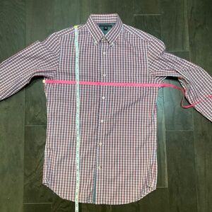 Banana Republic Tailored Slim Fit Non Iron Shirt Red Blue Check Button Down