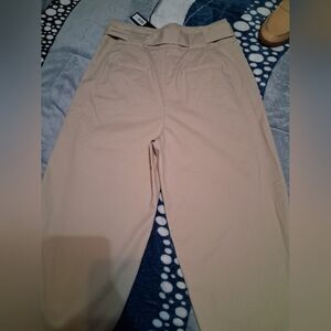 Sophisticated tan ankle pants with a stylish belt. Ideal for versatile wear.