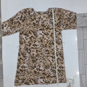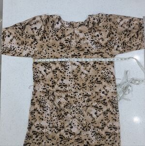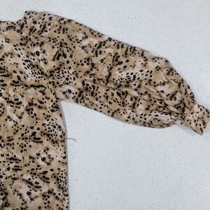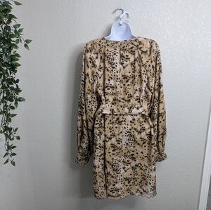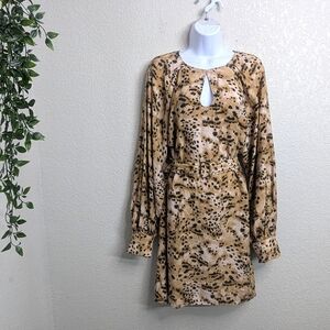 Banana Republic Tan Brown Animal Print Belted Mini Dress Balloon Long Sleeve M