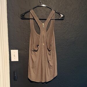 Chic tan tank top with racerback design. Ideal for layering or wearing alone. Soft fabric for all-day comfort.