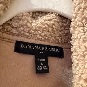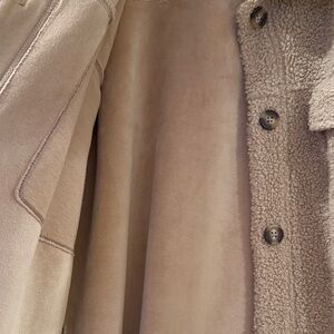 Cozy sherpa jacket. Button-up front. Two chest pockets. Perfect for layering.