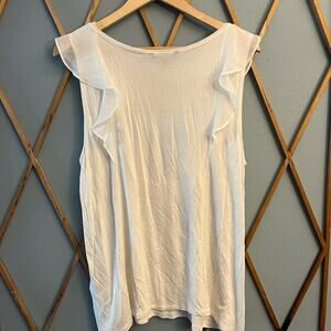 Banana Republic white tank top with pleated detail on bust and ruffled accent over shoulders. Size XL
