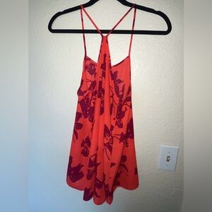 Banana Republic Tank Top Cami Blouse Bright Orange/Red W/ Purple Print SIZE S