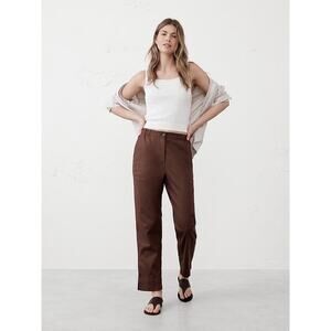 Banana Republic Tapered Linen Pull On Pant Women’s Small Dark Oak Brown Career