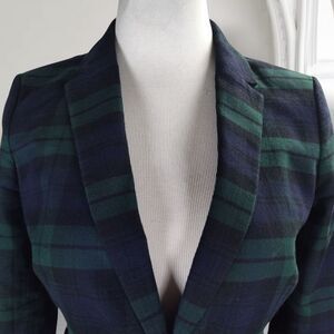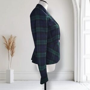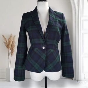 Banana Republic Tartan Plaid Blazer Size 4 Green Navy Cotton One Button Peplum