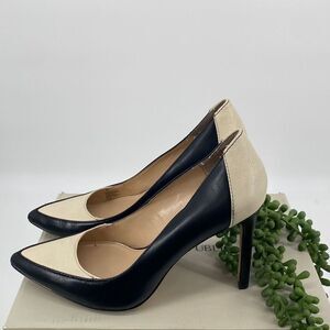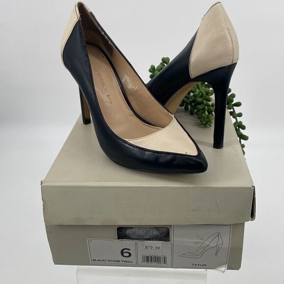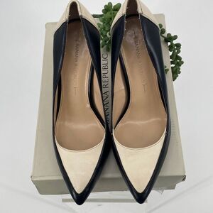 Banana Republic Tatum Leather Pointed Toe Two-Tone Dressy High Heels Pumps Black