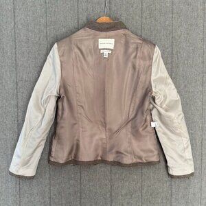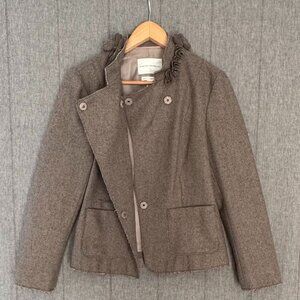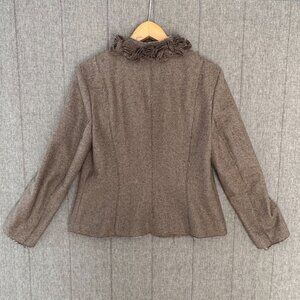 Banana Republic Taupe Ivory Wool Blend Herringbone Tweed 3D Floral Blazer Size 12 Petite