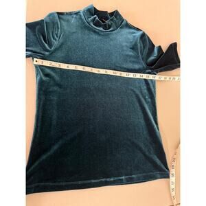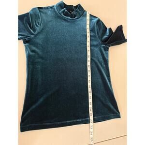 Banana Republic Teal Blue Green Velvet Mock Neck Half Sleeve Blouse Top Small