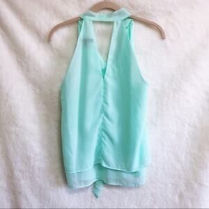 Banana Republic Teal Bow Front Sleeveless Sheer Top