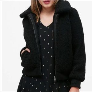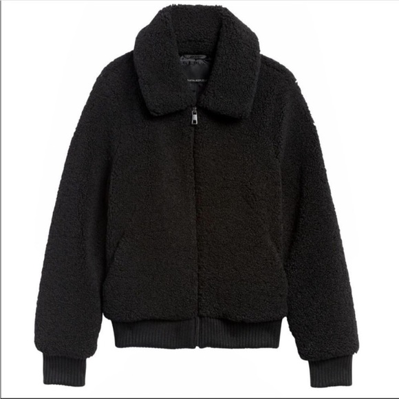 Banana Republic Teddy Sherpa Shearling Full Zip Bomber Jacket In Black