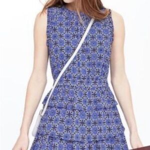 Banana Republic The Print Ruffle Dress blue tiered size 6