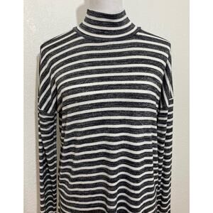 Banana Republic The Signature Tee Size Small Women Stripped Long Sleeve Knit Top Mock Neck Stretch Casual Hi-Low