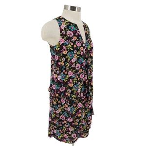 Banana Republic Tiered Shift Dress Black Floral Sleeveless V Neck XS
