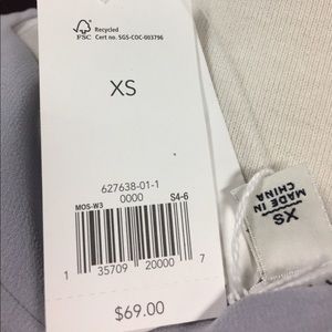NWT - Size XS - Office wear or Dress top, Off Grey, with Pleats and button, sheer fabric with attached slip