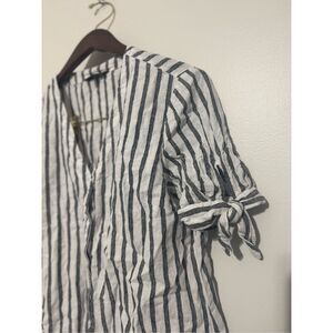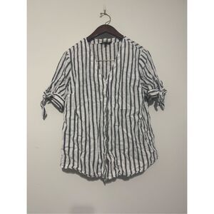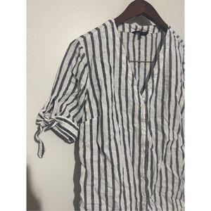 Banana Republic Top M Short Sleeve Button Up Collar Linen Blend Striped