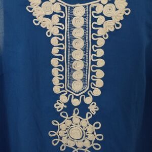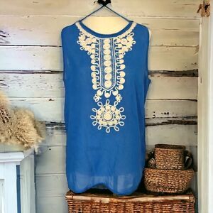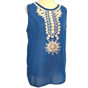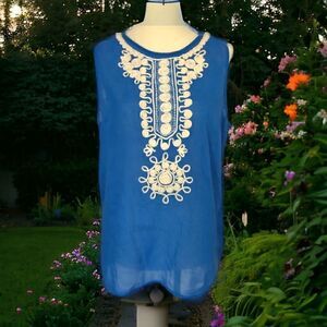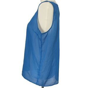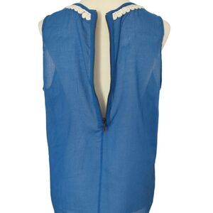 Banana Republic Top Sz 8 Gauzy Sheer Cotton Embroidery Sleeveless Zipper Blue.