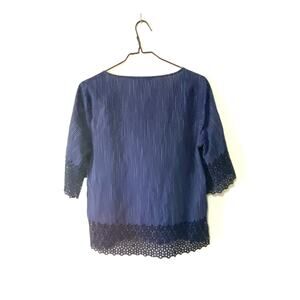 Banana Republic Top Women Small Blue Blouse Short Sleeve Crop Eyelet Summer EUC