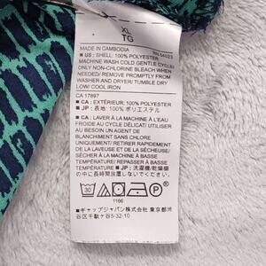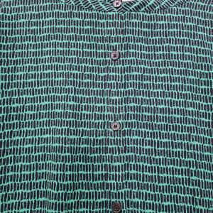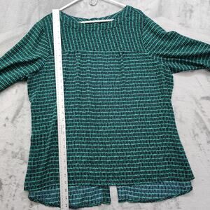 Banana Republic Top Womens Size XL Green Blue Back Button Crop Slit Sleeve Office Career Preppy Nautical Geometric Print