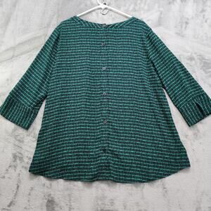 Banana Republic Top Womens Size XL Green Blue Back Button Crop Slit Sleeve