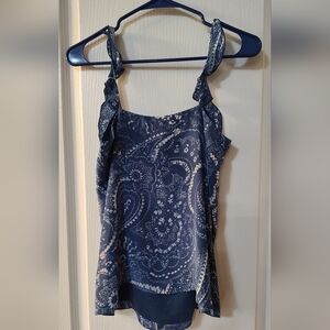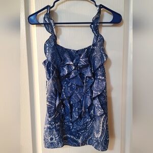 Banana Republic Top XS Blue Paisley 100% Silk Ruffled Tiers Sleeveless