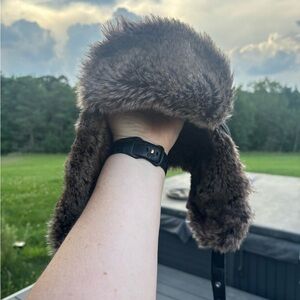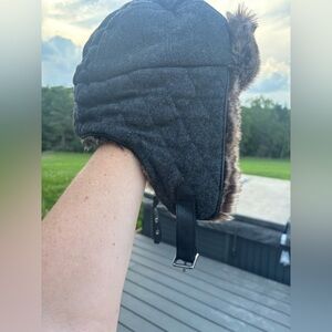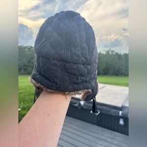 Banana Republic Trapper Hat Size Small Medium Faux Fur Wool Blend Quilted