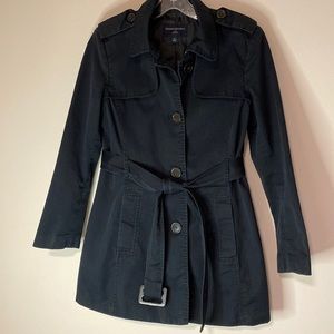 Banana Republic Trench Coat single breasted short cotton lightweight Black Small