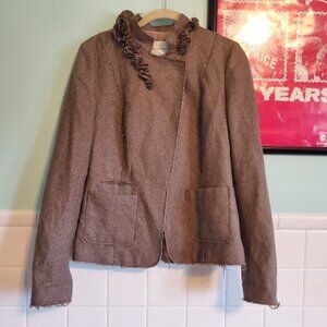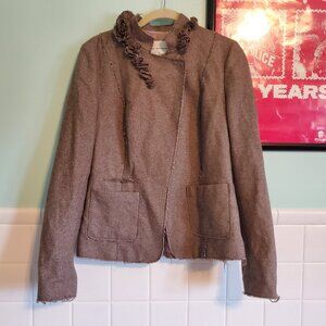 Banana Republic Tumblrcore 2010s Taupe Floral Trim Blazer Jacket Wool Blend