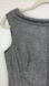 Midi length stretch wool blend sleeveless dress features elegant rolled collar on bateau neckline with back cutaway. Unique and sophisticated styling on this fitted dress. Deep v in back with hidden side zipper. Fabric is a tweedy blend of black and ivory. Lots of darting along bodice. Rear kick pleat. Dress is fully lined and has snaps in top to keep bra straps in place.