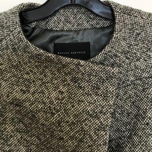 Banana Republic Tweed Crop coat. Open Front. Three-quarters sleeves. Wool and Lined with acetate. Dry clean.