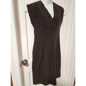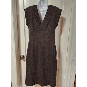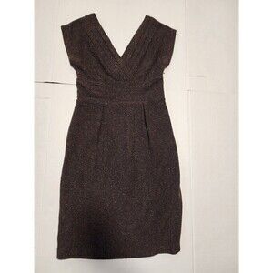 Banana Republic Tweed Pencil Dress Vintage Y2K Pleated V-neck Cap Sleeve Wool Silk Dark Brown Size 10