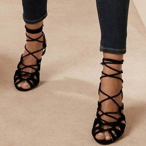 A little something from the BR archives, this inspired heel never goes out of style with a twist-front silhouette and wraparound ankle laces made of soft, luxurious suede.