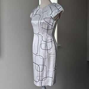 Banana Republic Unique Graphic Silk-Linen Blend Dress in Trending Silver Grey Color. Size 4.