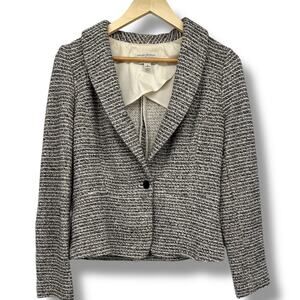 Banana Republic Unstructured Wool-Blend Knit Tweed Blazer Women's 8 Gray