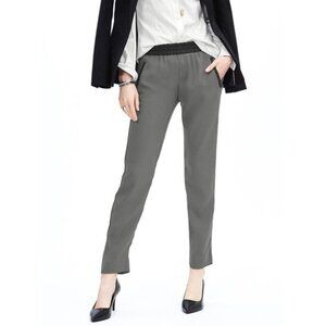 Banana Republic Urban Faux-Leather Trim Drapey Crepe Pant Gray sz 6 Straight Leg