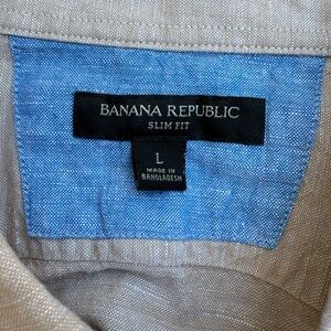 Banana Republic Utility Shirt L | Slim Fit Linen Blend | Partridge Brown