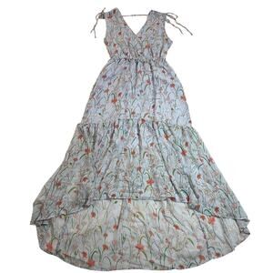 Banana Republic V-Neck Sleeveless Floral Ruched Midi Dress Size 2 High Low Hem