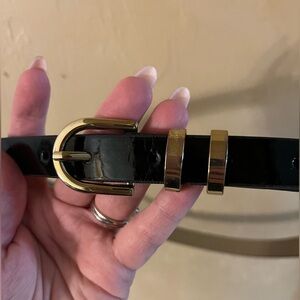 Banana Republic Vegan Leather Skinny Black Belt with Gold Buckle, size S