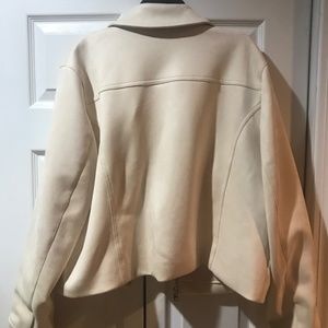 VEGAN SUEDE: Soft and stretchy, this vegan suede is made to look and feel luxurious. WARM: Lightly lined for chilly days. Point collar with zip front. Front, chest and interior chest pocket. Fully lined. Shell: 92% polyester, 8% spandex. Body lining: 65% cotton, 35% polyester. Machine wash.