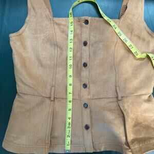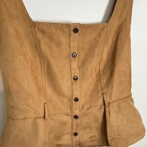 Banana Republic Vegan Suede Womens Sz 6 Camel Brown Sleeveless Peplum Western