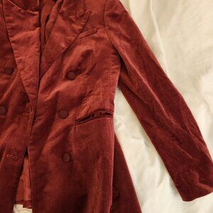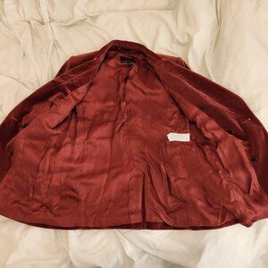 Banana Republic veluro velvet double breasted oversized blazer in cabin red, size 2 regular. In good used condition. This was part of Banana Republic's 2023 winter collection, which included matching trousers (this is for the blazer only). Can provide measurements on request