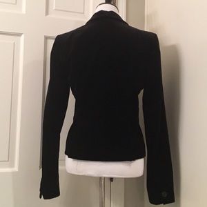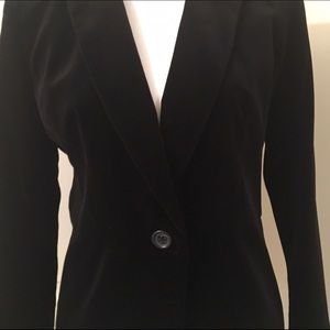 One button jacket; 100% cotton; Dry clean. Never worn! The measurements on this jacket are approximately: shoulder 16 1/4” across, length from top of collar to bottom hem 24 1/2”, sleeve from shoulder seam to bottom cuff 26 1/4”, chest flat across 16”, and waist flat across at the button 16”.