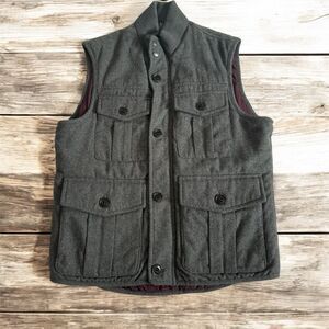 Banana Republic Vest Mens Medium Gray Full Zip Wool Blend Flap Pocket Outdoor