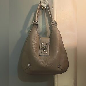 Banana Republic warm neutral grey taupe Pebble Soft Cow Leather Hobo Shoulder Bag. Great used condition, there is a tiny tiny mark on exterior of bag which is pictured.