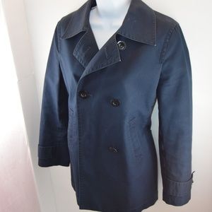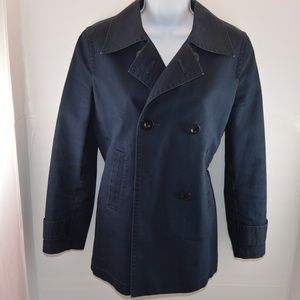 Banana Republic Vintage Navy Double Breasted Pea Coat. In very good used condition - only slight fading and collar edge tips a little worn from dry cleaning (see photos). Navy Blue 100% Cotton. Gently used. 219836-01 305606 04/SPR 372555