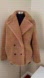 Luxurious camel teddy jacket. Soft texture and double-breasted design. Ideal for warmth and style.